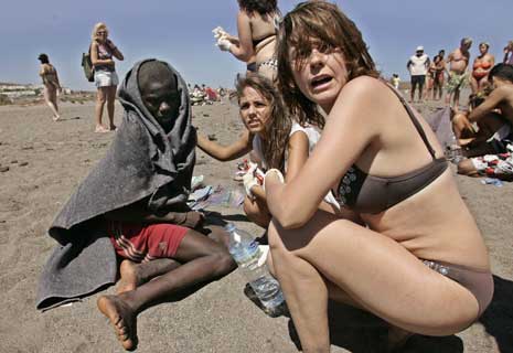 Es difícil imaginarse, como sería para estas humildes familias abandonar su tierra para siempre. Sin ningún conocimiento, sin la certeza de llegar a su destino. Visto desde la abundancia, siempre cuesta imaginar la emigración: pienso en las imágenes (2008/2009) de los “Sin Papeles” de Senegal o de otros países africanos, que llegaban muertos de sed en sus abarrotados cayucos a las playas canarias repletas de turistas. Seres humanos que recibieron atenciones médicas y alojamiento en refugios, pero no se atrevieron a revelar su país de procedencia por miedo a ser repatriados – a excepción de los menores. La playa fue devuelta a los turistas una vez desinfectada después de atender a los refugiados. ¿Ya lo olvidamos? El mundo es un pañuelo.